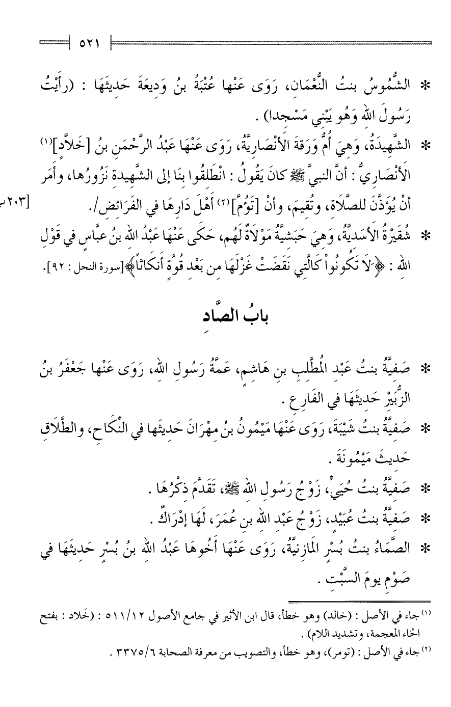* الشُّمُوسُ بنتُ النُّعْمَانِ، رَوَى عَنْها عُتْبَةُ بنُ وَدِيعَةَ حَدِيثَهَا: (رأَيْتُ رَسُولَ الله وَهُو يَبْنِي مَسْجِدا).
