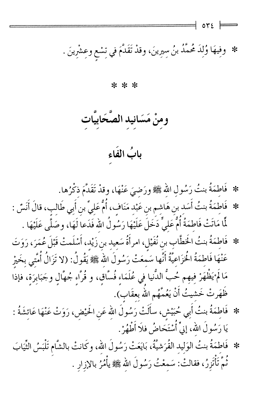 ومِنْ مَسَانِيدِ الصَّحَابِيَّاتِ بابُ الفَاءِ