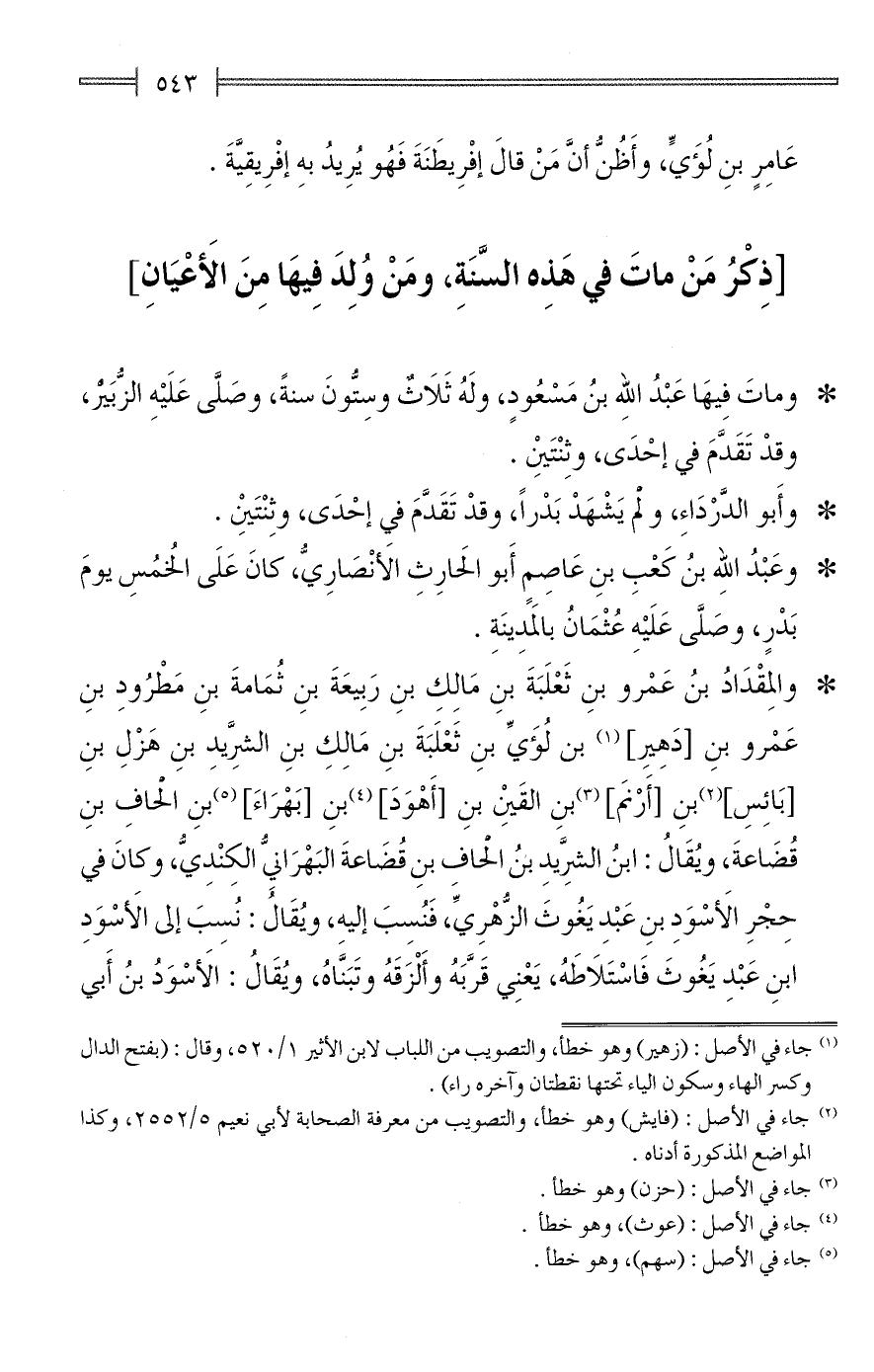 * وماتَ فيهَا عَبْدُ اللهِ بنُ مَسْعُودٍ، ولَهُ ثَلَاثٌ وسِتُّونَ سنةً، وصَلَّى عَلَيْهِ الزُّبَيْرُ، وقدْ تَقَدَّمَ في إحْدَى، وثِنْتَينِ.