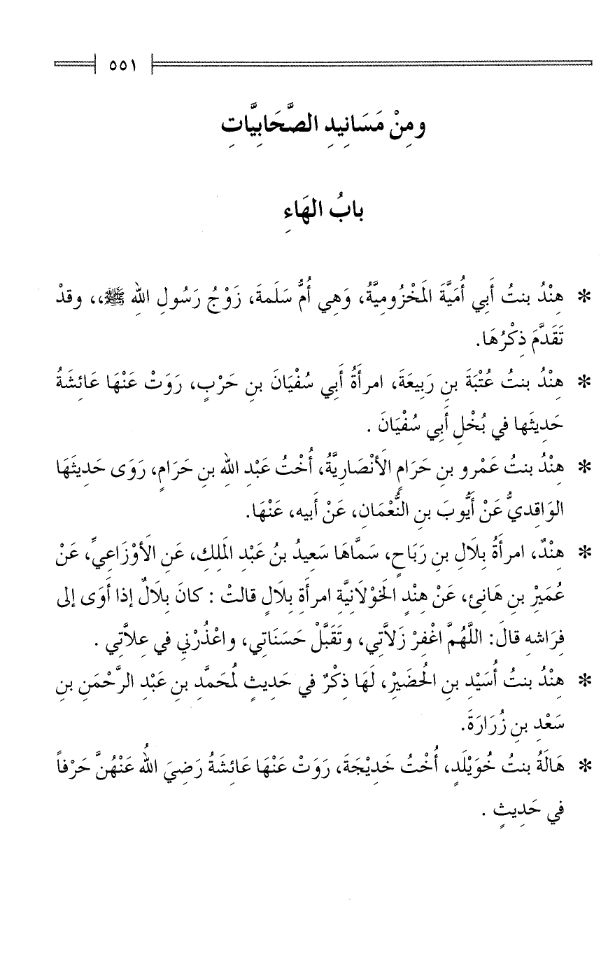 ومِنْ مَسَانِيدِ الصَّحَابِيَّاتِ بابُ الهَاءِ