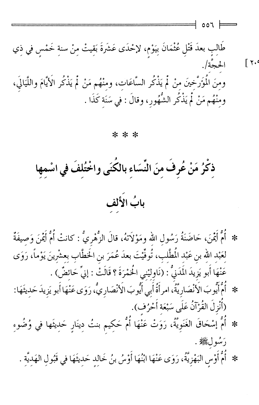 ذِكْرُ مَنْ عُرِفَ مِنَ النِّسَاءِ بالكُنَى واخْتُلِفَ في اسْمِهِا