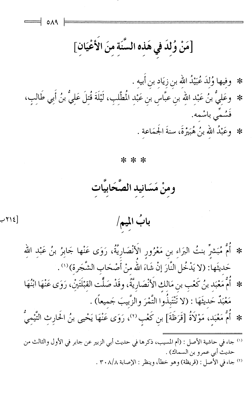 ومِنْ مَسَانِيدِ الصَّحَابِيَّاتِ بابُ المِيمِ