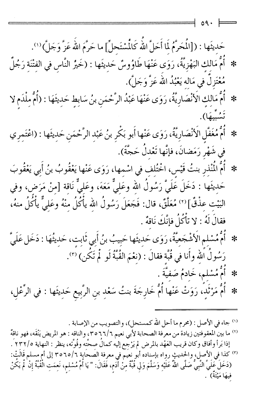 * أُمُّ مُسْلِمٍ الأَشْجَعِيَّةُ، رَوَى حَدِيثَها حَبِيبُ بنُ أَبِي ثَابِتٍ، حَدِيثُهَا: دَخَل عَلَىَّ رَسُولُ الله وأَنا في قُبَّة فقالَ: (نِعْمَ القُبَّةُ لَو لمْ تَكُن) (¬3).