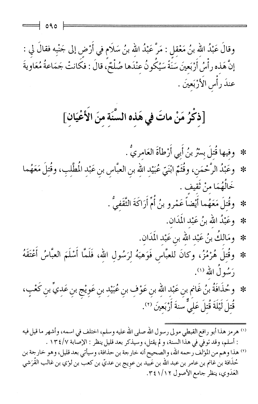 (¬1) هرمز هذا أبو رافع القبطي مولى رسول الله صلى الله عليه وسلم، اختلف في اسمه، وأشهر ما قيل فيه: أسلم، وقد توفي في هذا السنة، ولم يقتل، وسيذكر بعد قليل ينظر: الإصابة 7/ 134.