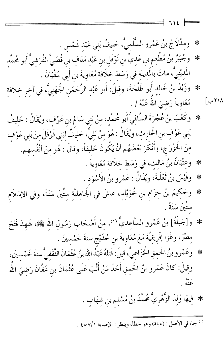 (¬1) جاء في الأصل: (عبلة) وهو خطأ، وينظر: الإصابة 1/ 457.