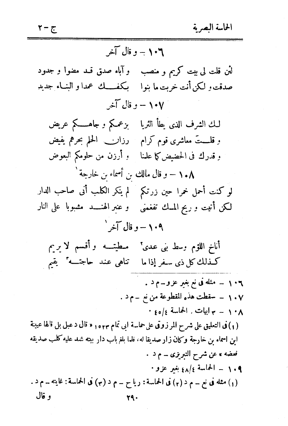 110 - وَقَالَ عميرَة بن مرّة الحرشى وتروى ليزِيد بن مفرغ الحميرى أموى الشّعْر