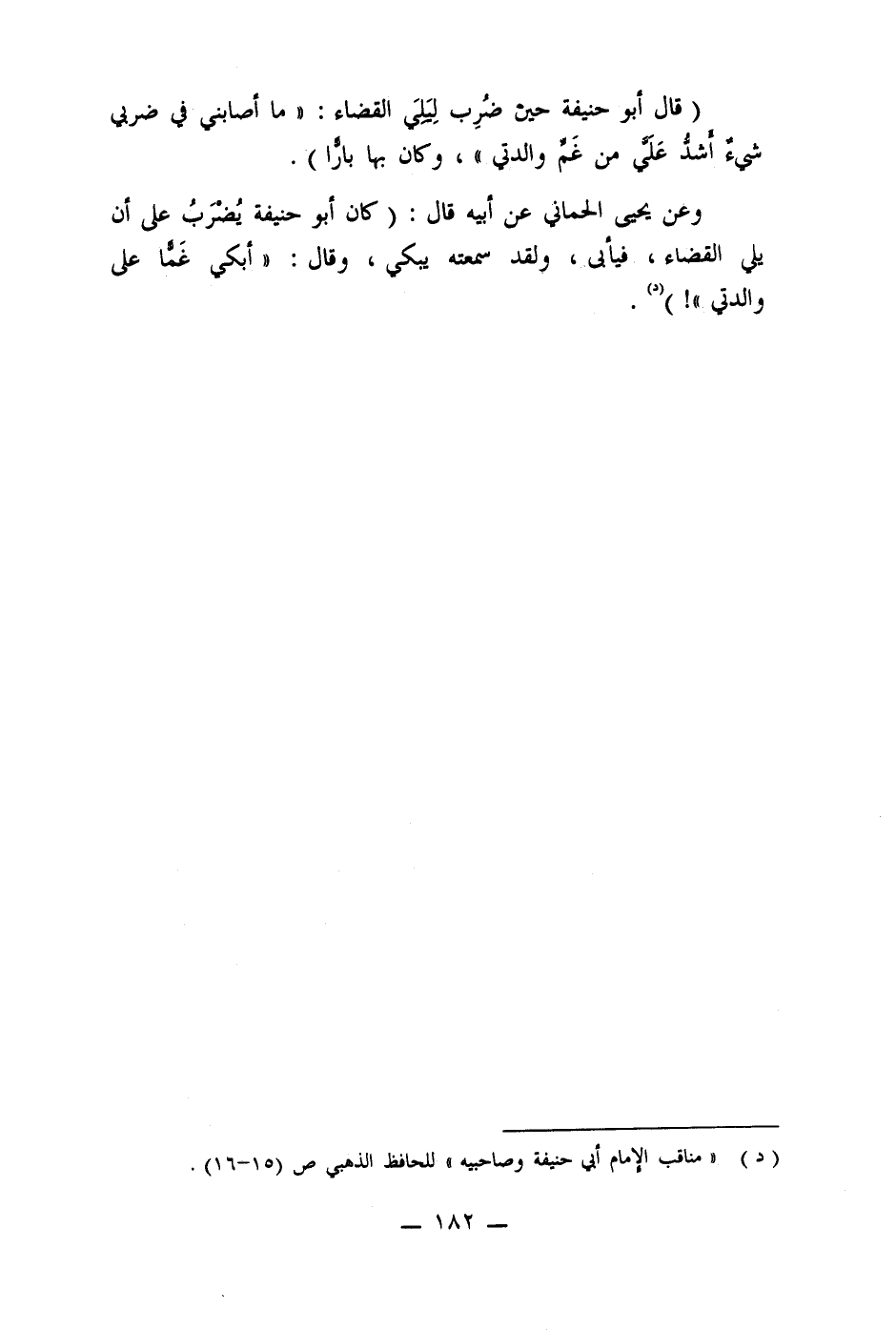 (د) مناقب الإمام أبي حنيفة وصاحبيه " للحافظ الذهبي ص (15 - 16) .