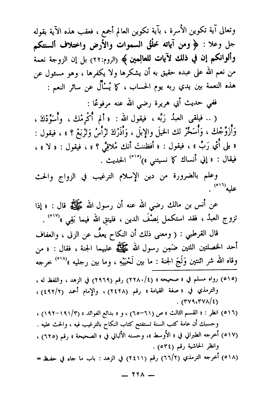 (516) انظر: " القسم الثالث" ص (61-65) ، و " بدائع الفوائد" (3/191 -192) ، وحسبك أن عامة كتب السنة تستفتح كتاب النكاح بالترغيب فيه، والحث عليه.