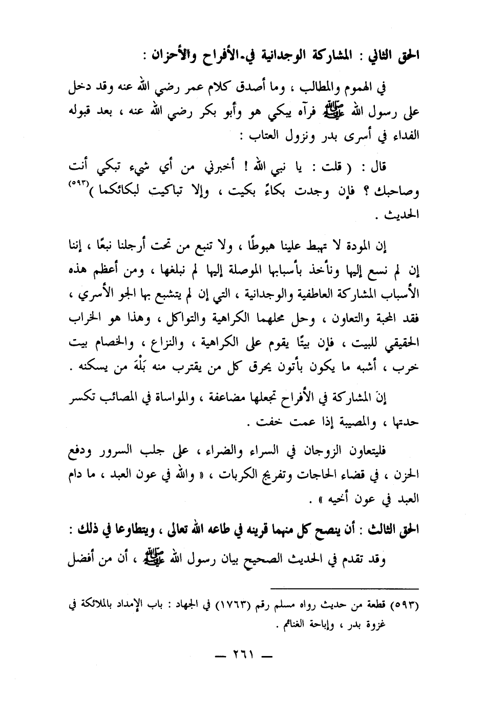 الحق الثاني: المشاركة الوجدانية في الأفراح والأحزان: