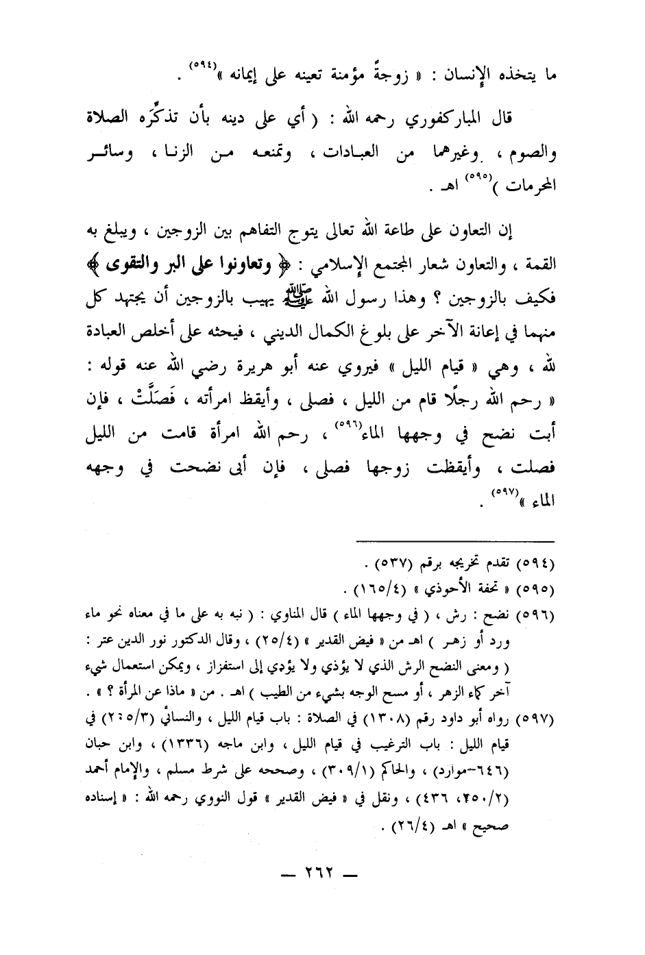 ما يتخذه الإنسان: " زوجةً مؤمنة تعينه على إيمانه " (594) .