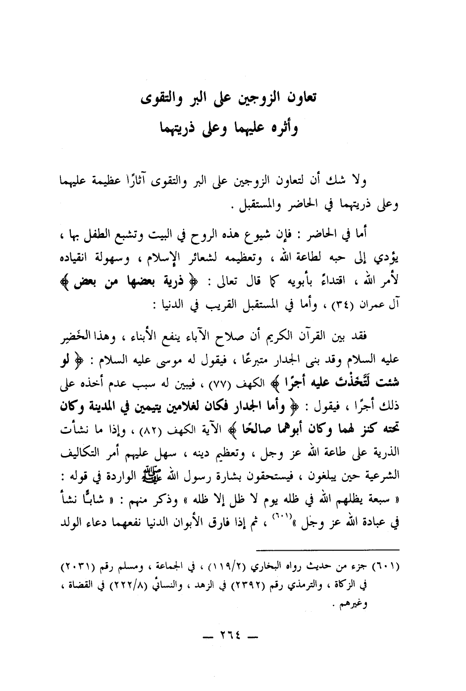 ولا شك أن لتعاون الزوجين على البر والتقوى آثارًا عظيمة عليهما وعلى ذريتهما في الحاضر والمستقبل.