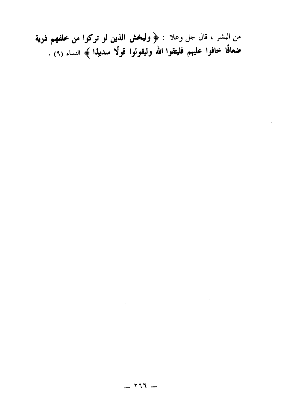 من البشر، قال جل وعلا: (وليخش الذين لو تركوا من خلفهم ذرية ضعافا خافوا عليهم فليتقوا الله وليقولوا قولا سديدا) النساء (9) .