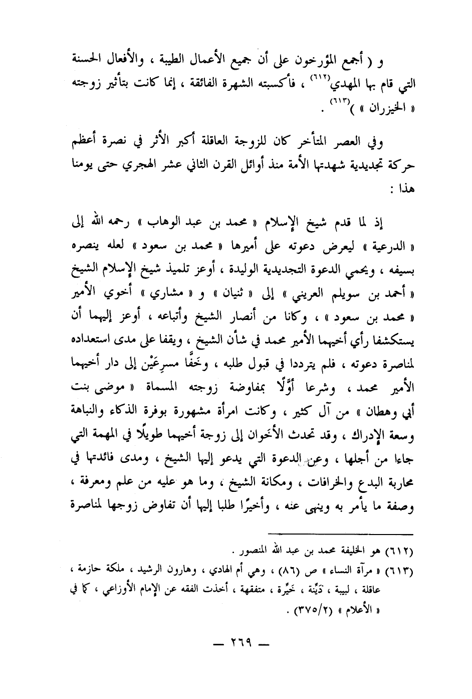 (613) " مرآة النساء " ص (86) ، وهي أم الهادي، وهارون الرشيد، ملكة حازمة، عاقلة، لبيبة، دينة، خيرة، متفقهة، أخذت الفقه عن الإمام الأوزاعي، كما في " الأعلام " (2/375) .