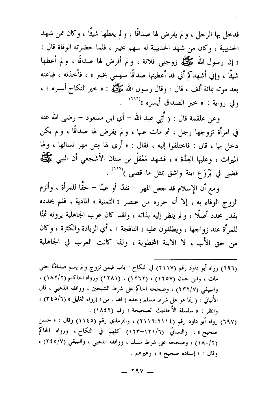 (697) رواه أبو داود رقم (2114: 2116) ، والترمذي رقم (1145) وقال: " حسن صحيح "، والنسائي (6/121 - 123) كلهم في النكاح، ورواه الحاكم (2/180) ، وصححه على شرط مسلم، ووافقه الذهبي، والبيهقي (7/245) ، وقال: " إسناده صحيح"، وغيرهم.