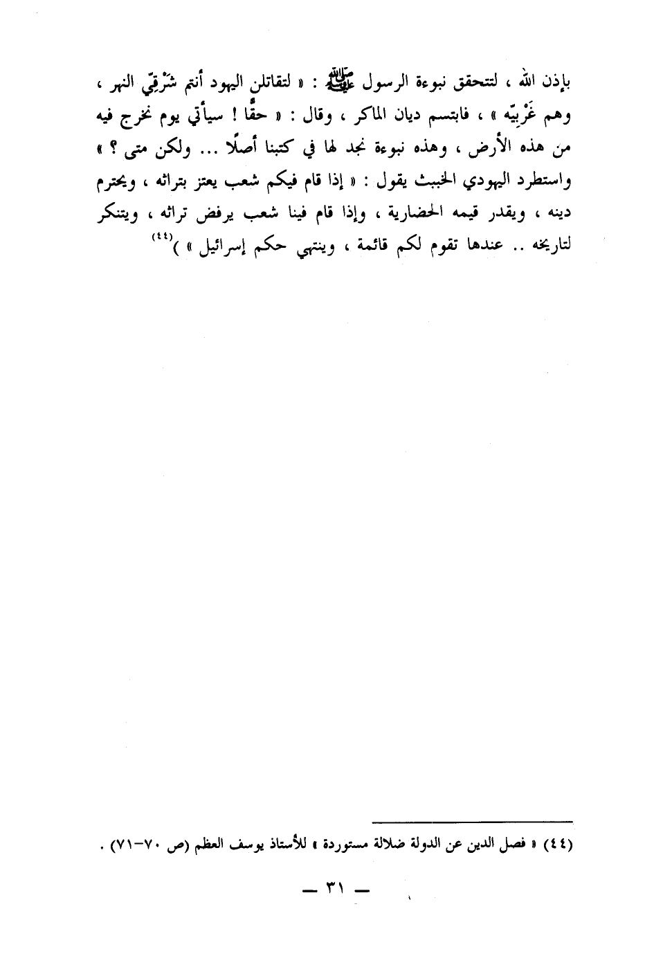(44) "فصل الدين عن الدولة ضلالة مستوردة، للأستاذ يوسف العظم (ص 70- 71) .