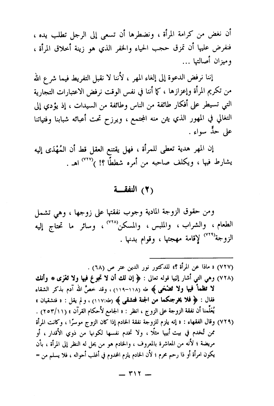 (727) " ماذا عن المرأة؟ " للدكتور نور الدين عتر ص (68) .