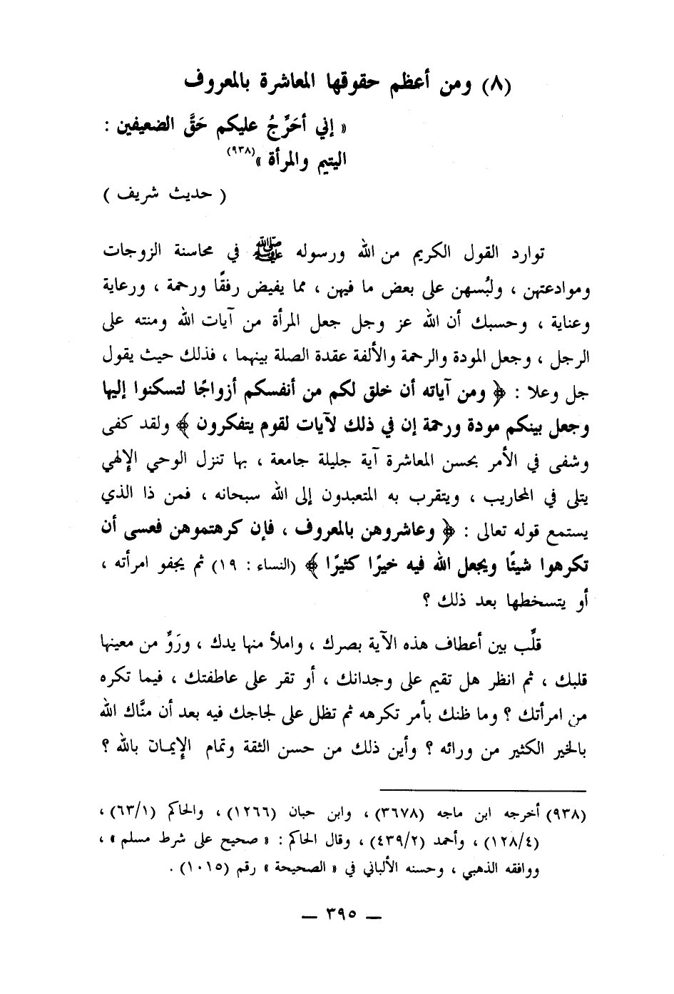 (8) ومن أعظم حقوقها المعاشرة بالمعروف