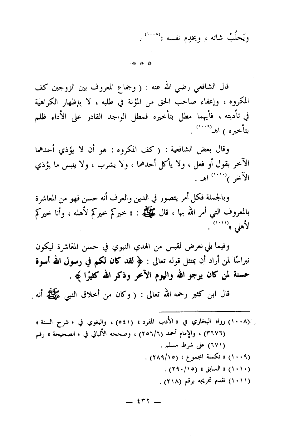 وفيما يلي نعرض لقبس من الهدي النبوي في حسن المعَاشرة ليكون نبراسَا لمن أراد أن يمتثل قوله تعالى: (لقد كان لكم في رسول الله أسوة حسنة لمن كان يرجو الله واليوم الآخر وذكر الله كثيرا) .