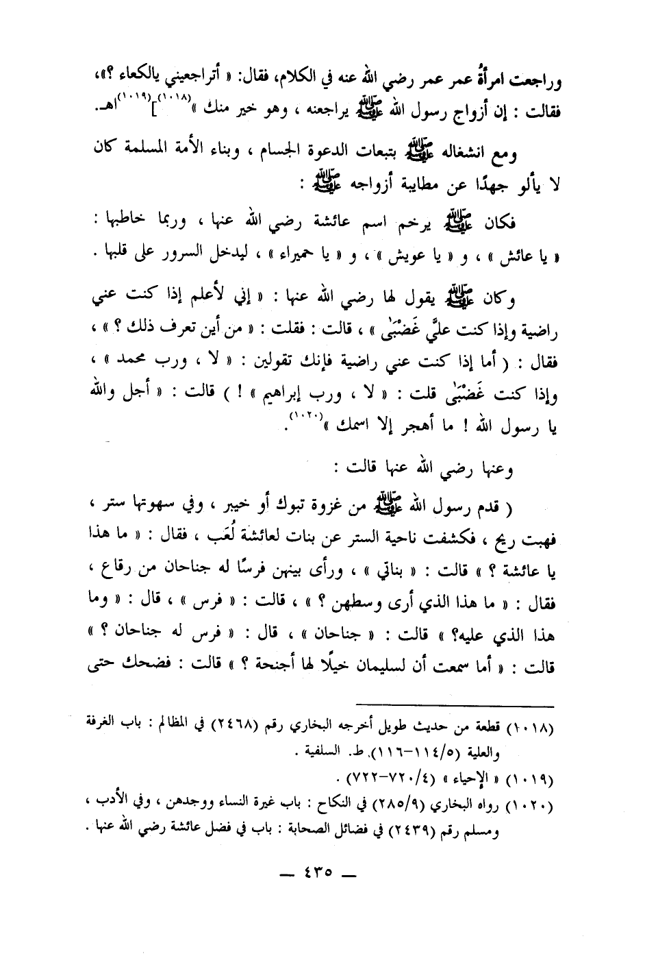 وراجعت امرأةُ عمر عمر رضي الله عنه في الكلام، فقال: " أتراجعيني يالكعاء؟ "، فقالت: إن أزواج رسول الله صلى الله عليه وسلم يراجعنه، وهو خير منك " (1018) ] (1019) اهـ. ومع انشغاله صلى الله عليه وسلم بتبعات الدعوة الجسام، وبناء الأمة المسلمة كان لا يألو جهدًا عن مطايبة أزواجه صلى الله عليه وسلم: