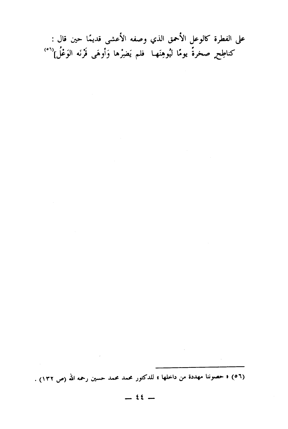 كناطِح صخرةً يومًا ليُوهِنَها ... فلم يَضِرْها وَأوهَى قَرْنَه الوَعْلُ] (56)