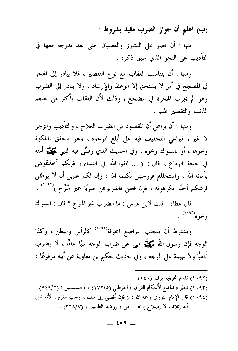 (ب) اعلم أن جواز الضرب مقيد بشروط: