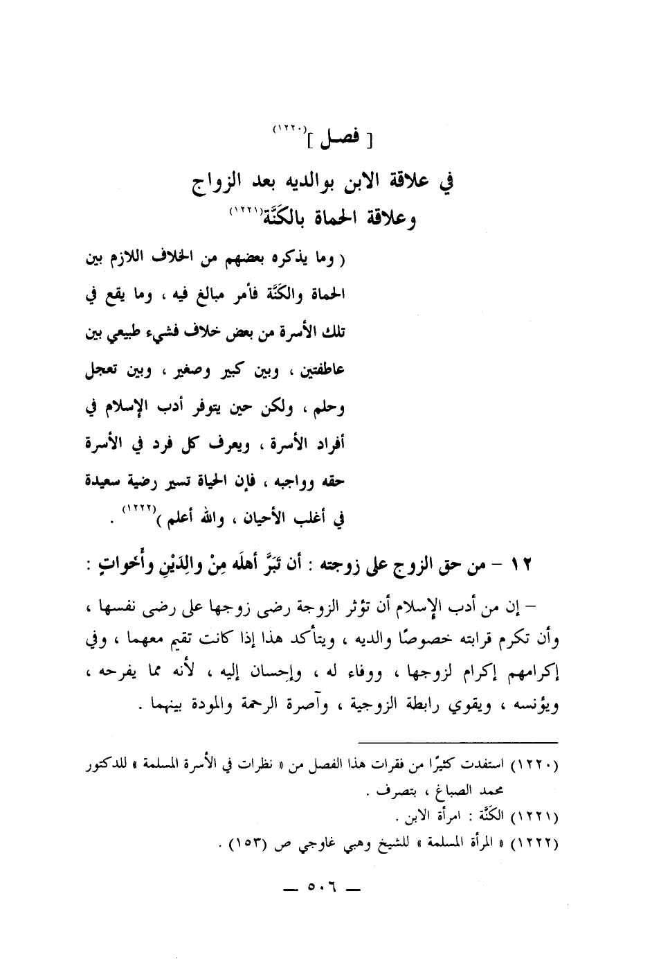(1220) استفدت كثيرا من فقرات هذا الفصل من " نظرات في الأسرة المسلمة" للدكتور محمد الصباغ، بتصرف.