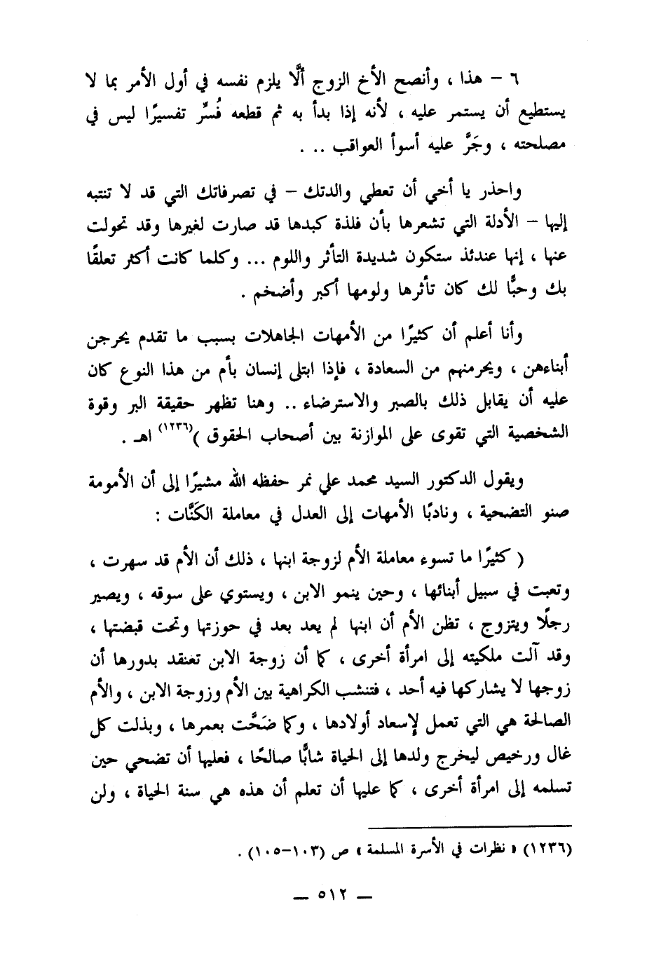 (1236) "نظرات في الأسرة المسلمة" ص (103 - 105) .