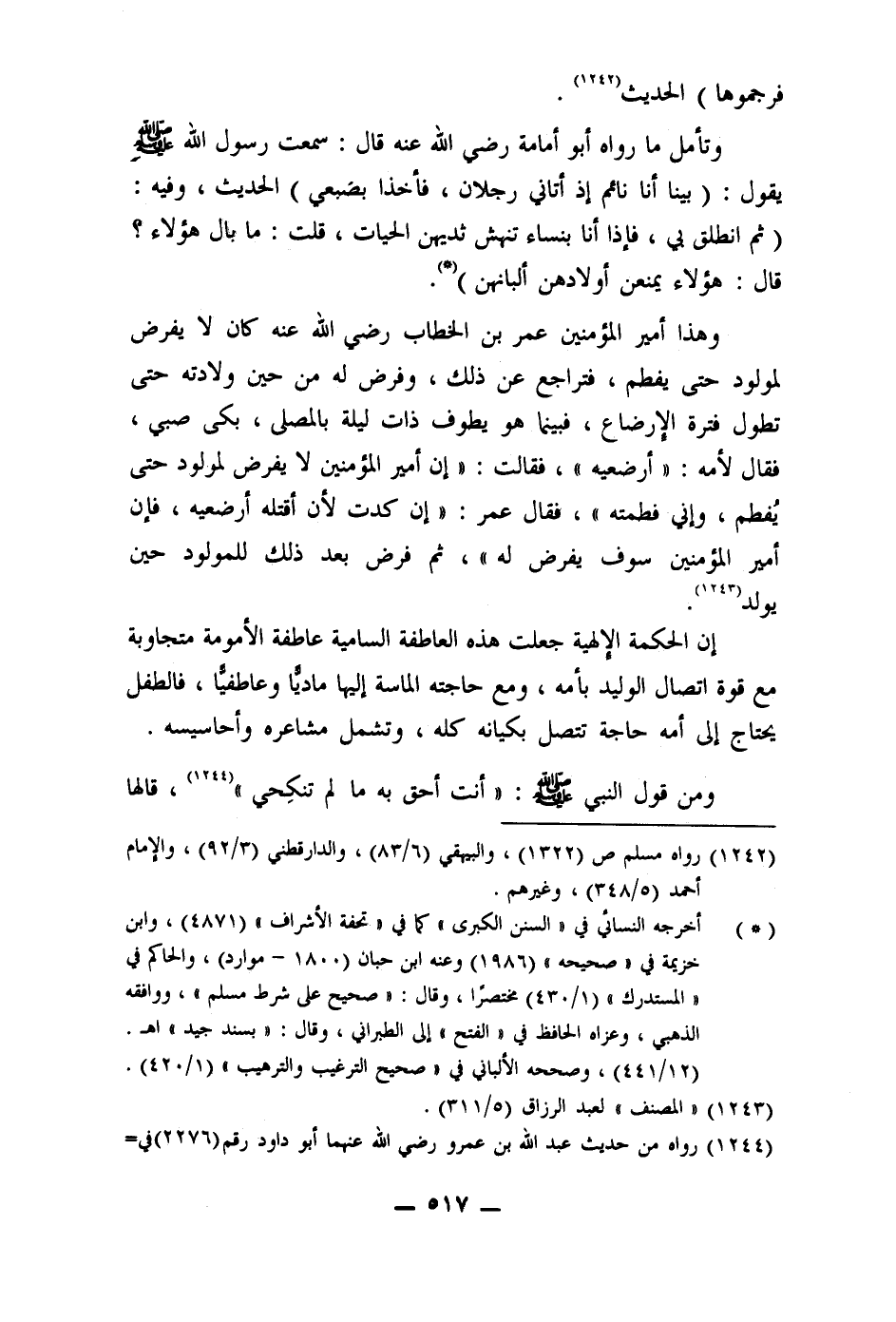 ومن قول النبي صلى الله عليه وسلم: " أنت أحق به ما لم تنكِحي" (1244) ، قالها