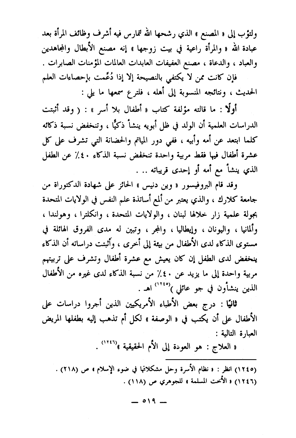 (1245) انظر: " نظام الأسرة وحل مشكلاتها في ضوء الإسلام" ص (218) .