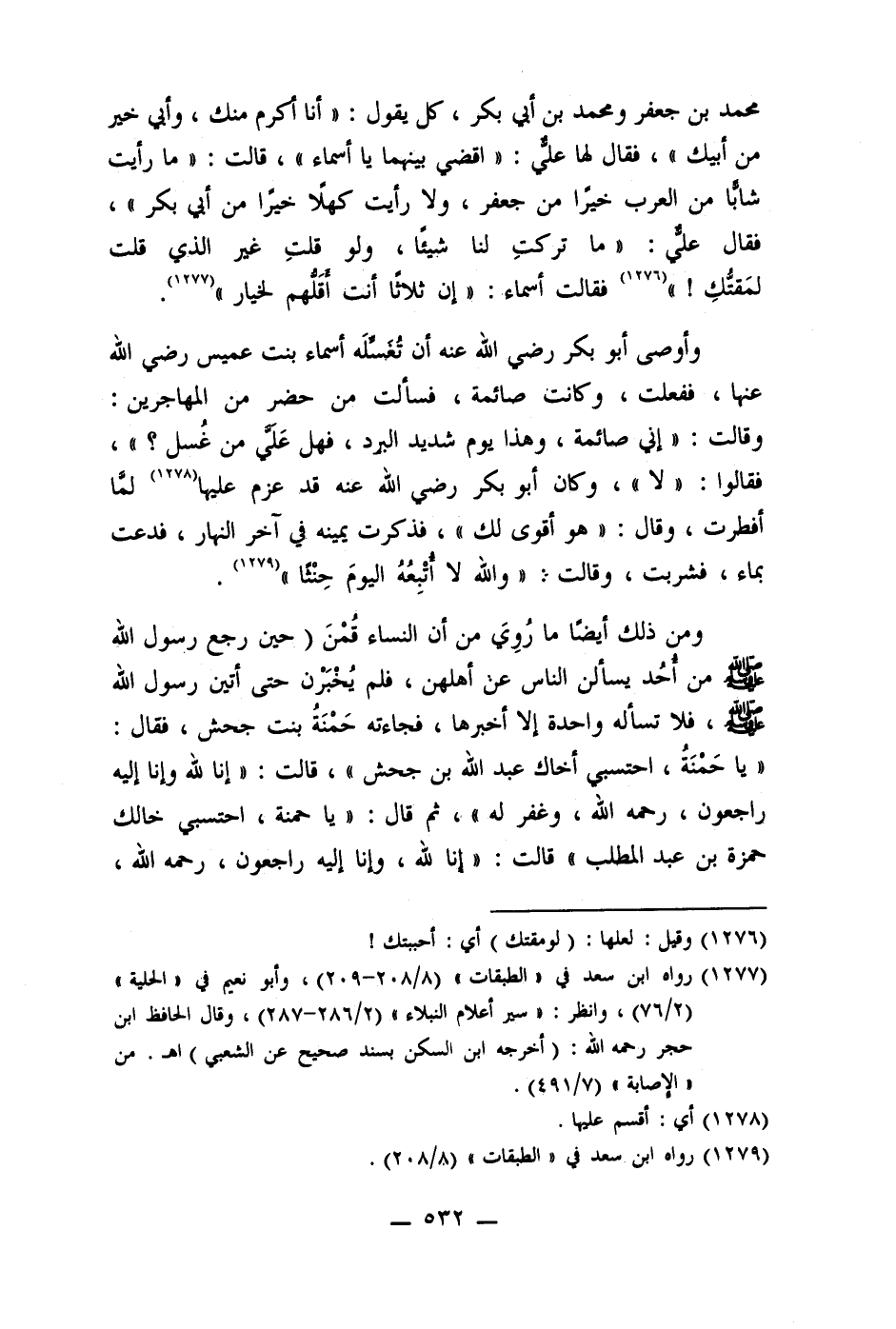 (1277) رواه ابن سعد في " الطبقات " (8/208 - 209) ، وأبو نعيم في " الحلية " (2/76) ، وانظر: " سير أعلام النبلاء " (2/286 - 287) ، وقال الحافظ ابن حجر رحمه الله: (أخرجه ابن السكن بسند صحيح عن الشعبي) اهـ. من "الإصابة " (7/ 491) .