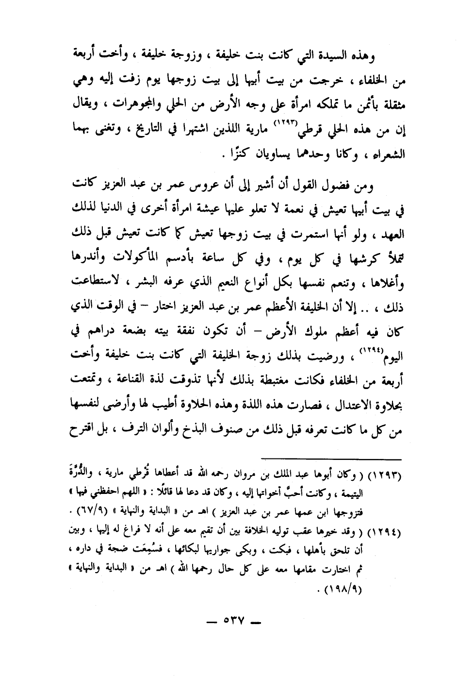 (1294) (وقد خيرها عقب توليه الخلافة بين أن تقيم معه على أنه لا فراغ له إليها، وبين أن تلحق بأهلها، فبكت، وبكى جواريها لبكائها، فسمِعَت ضجة في داره، ثم اختارت مقامها معه على كل حال رحمها الله) اهـ من " البداية والنهاية" (9/198) .