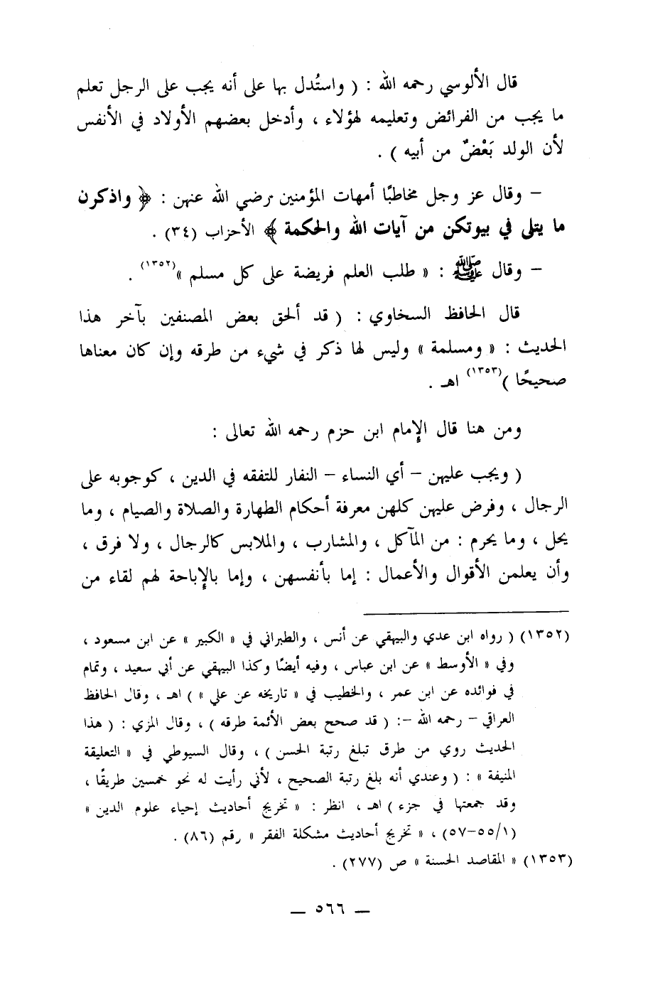 - وقال صلى الله عليه وسلم: " طلب العلم فريضة على كل مسلم " (1352) .