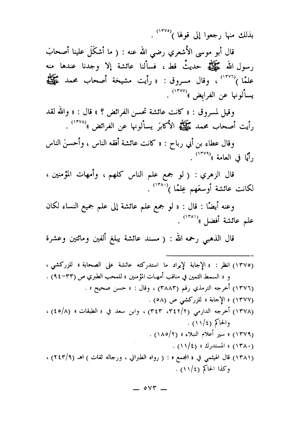 (1377) " الإجابة" للزركشي ص (58) .