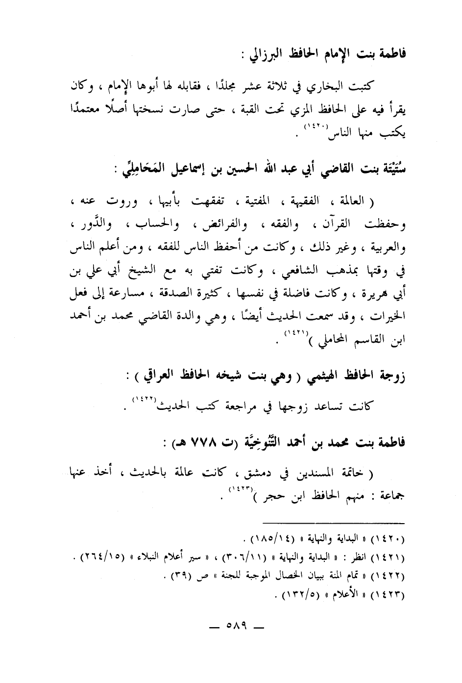 (خاتمة المسندين في دمشق، كانت عالمة بالحديث، أخذ عنها جماعة: منهم الحافظ ابن حجر) (1423)