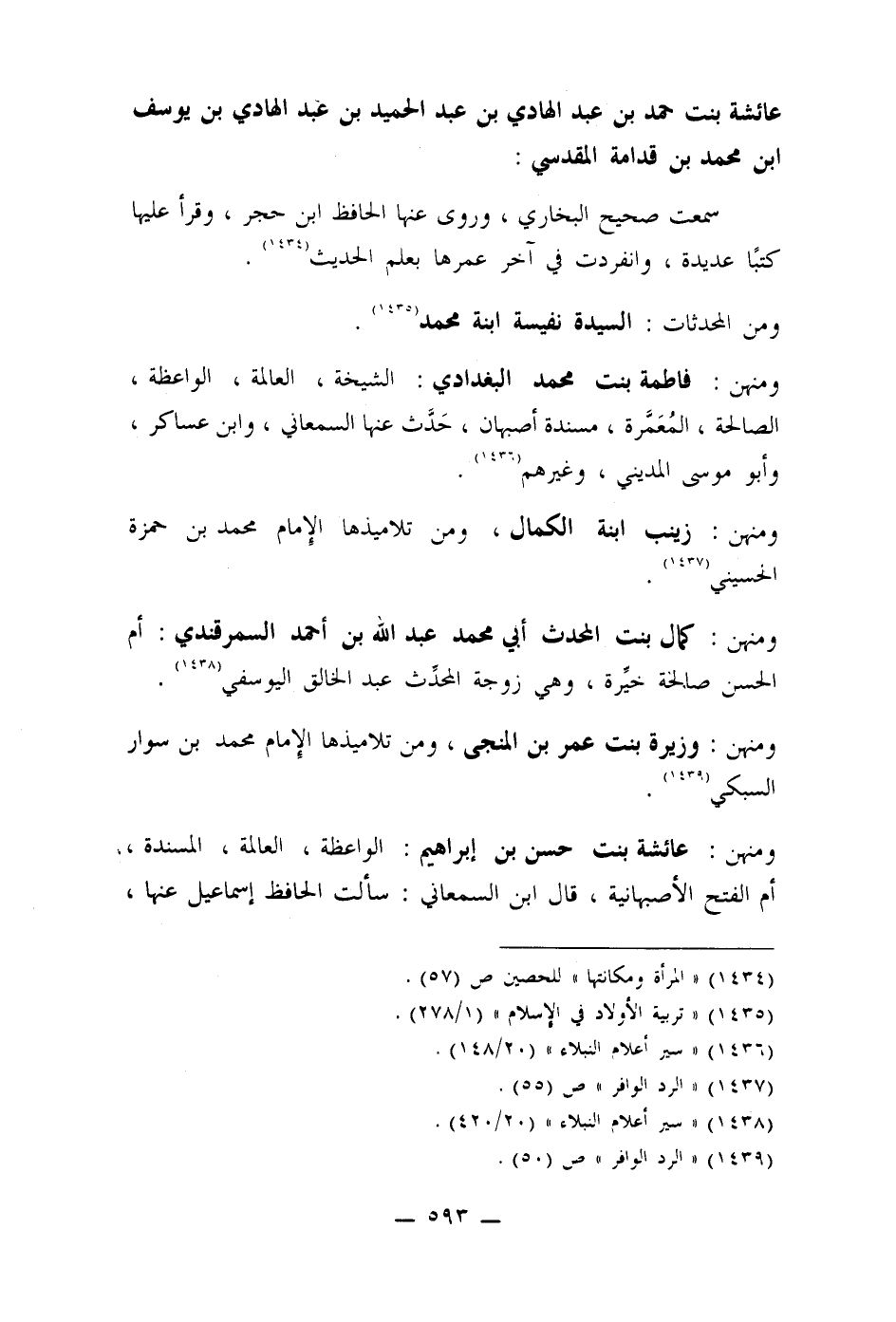 ومن المحدثات: السيدة نفيسة ابنة محمد (1435) .