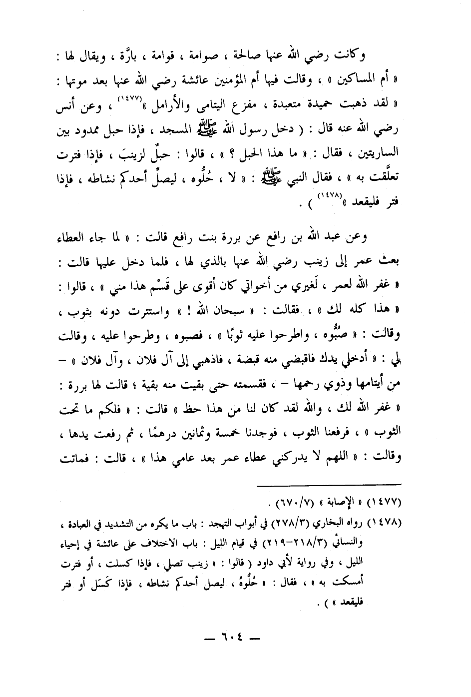 (1478) رواه البخاري (3/278) في أبواب التهجد: باب ما يكره من التشديد في العبادة، والنسائي (3/218-219) في قيام الليل: باب الاختلاف على عائشة في إحياء الليل، وفى رواية لأبي داود (قالوا: " زينب تصلي، فإذا كسلت، أو فترت أمسكت به"، فقال: " خلُّوهُ، ليصل أحدكم نشاطه، فإذا كسَل أو فتر فليقعد") .