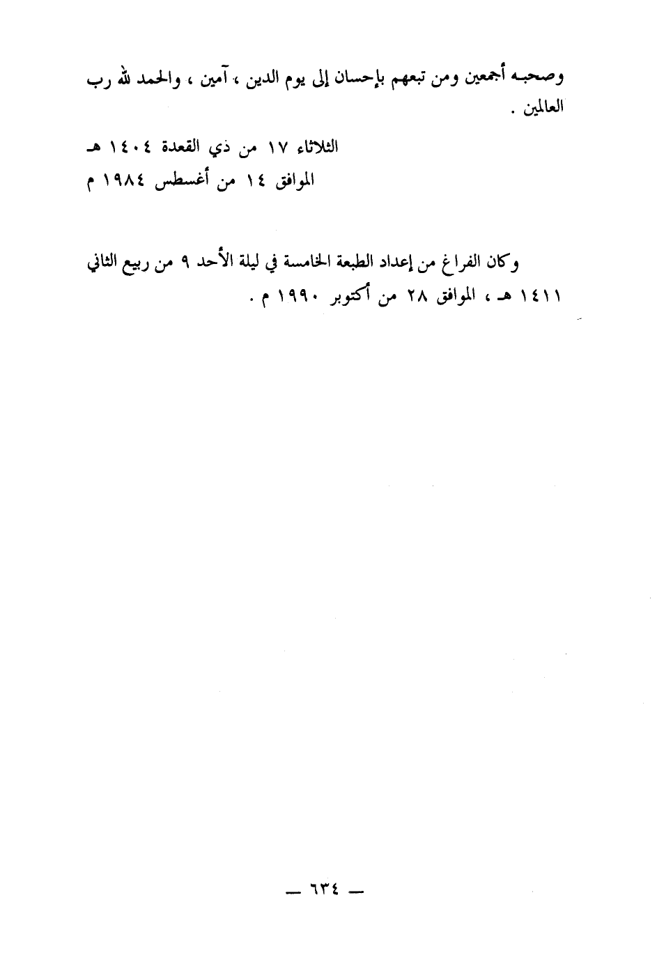 وكان الفراغ من إعداد الطبعة الخامسة في ليلة الأحد 9 من ربيع الثاني 1411 هـ، الموافق 28 من أكتوبر 1990م.