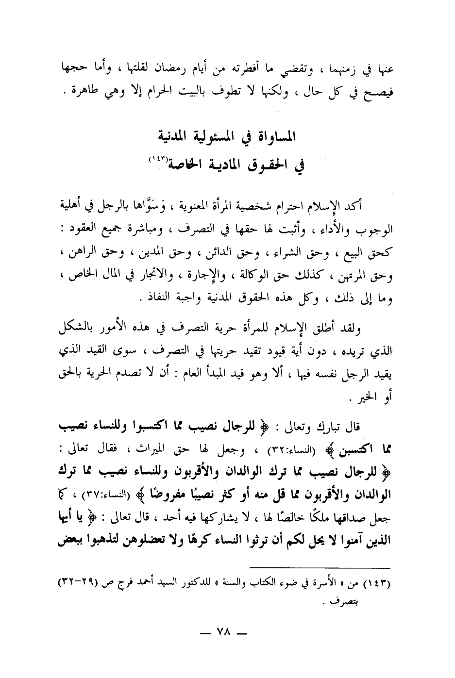 (143) من "الأسرة في ضوء الكتاب والسنة " للدكتور السيد أحمد فرج ص (29-32) بتصرف.
