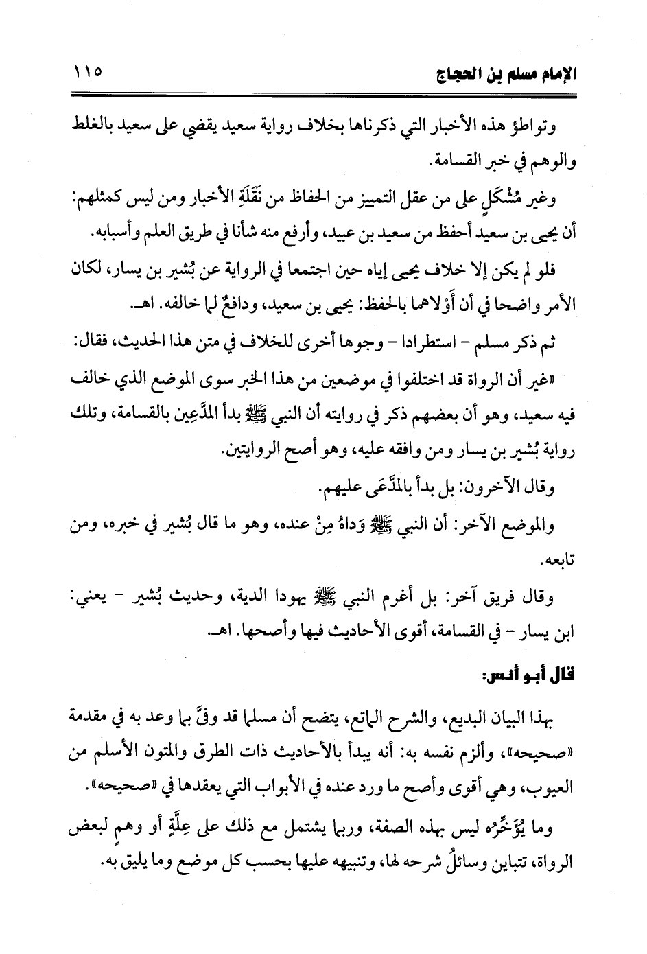 "غير أن الرواة قد اختلفوا في موضعين من هذا الخبر سوى الموضع الذي خالف فيه سعيد، وهو أن بعضهم ذكر في روايته أن النبي -صلى الله عليه وسلم- بدأ المدَّعِين بالقسامة، وتلك رواية بُشير بن يسار ومن وافقه عليه، وهو أصح الروايتين.