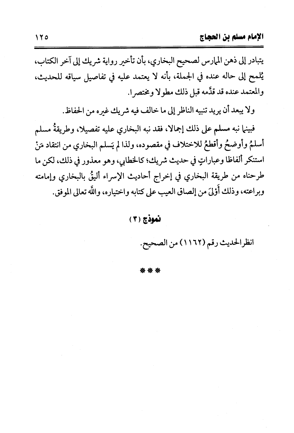 فبينما نبه مسلم على ذلك إجمالا، فقد نبه البخاري عليه تفصيلا، وطريقةُ مسلم أسلمُ وأوضحُ وأقطعُ للاختلاف في مقصوده، ولذا لم يَسلم البخاري من انتقاد مَنْ استنكر ألفاظا وعباراتٍ في حديث شريك؛ كالخطابي، وهو معذور في ذلك، لكن ما طرحناه من طريقة البخاري في إخراج أحاديث الإسراء أليقُ بالبخاري وإمامته وبراعته، وذلك أَوْلَى من إلصاق العيب على كتابه واختياره، والله تعالى الموفق.