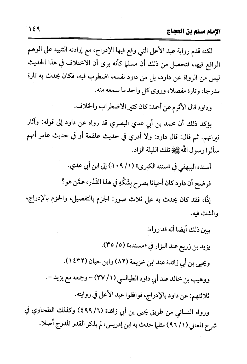 لكنه قدم رواية عبد الأعلى التي وقع فيها الإدراج، مع إرادته التنبيه على الوهم الواقع فيها، فتحصل من ذلك أن مسلما كأنه يرى أن الاختلاف في هذا الحديث ليس من الرواة عن داود، بل من داود نفسه، اضطرب فيه، فكان يحدث به تارة مدرجا، وتارة مفصلا، وروى كل واحد ما سمعه منه.