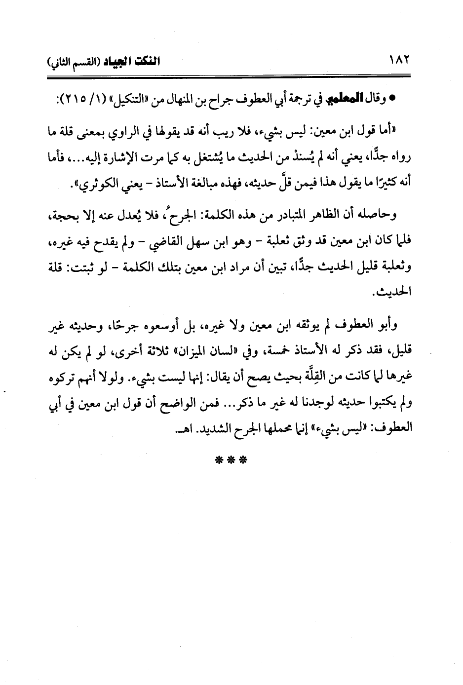 • وقال المعلمي في ترجمة أبي العطوف جراح بن المنهال من "التنكيل" (1/ 215):