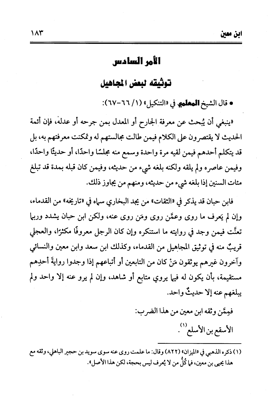 • قال الشيخ المعلمي "التنكيل" (1/ 66 - 67):