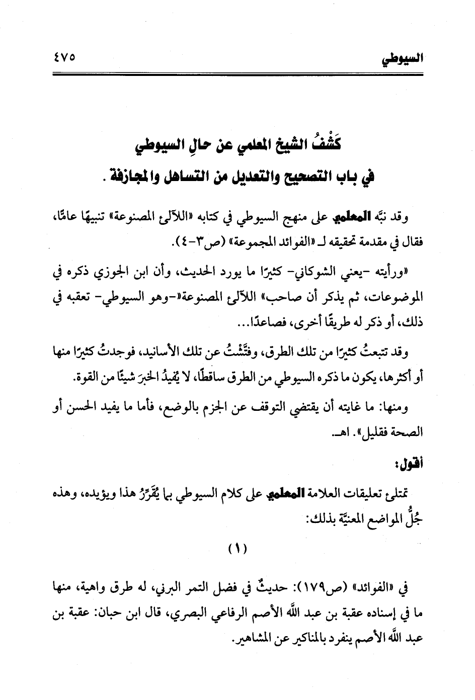 كَشْفُ الشيخ المعلمي عن حالِ السيوطي في باب التصحيح والتعديل من التساهل والجازفة.