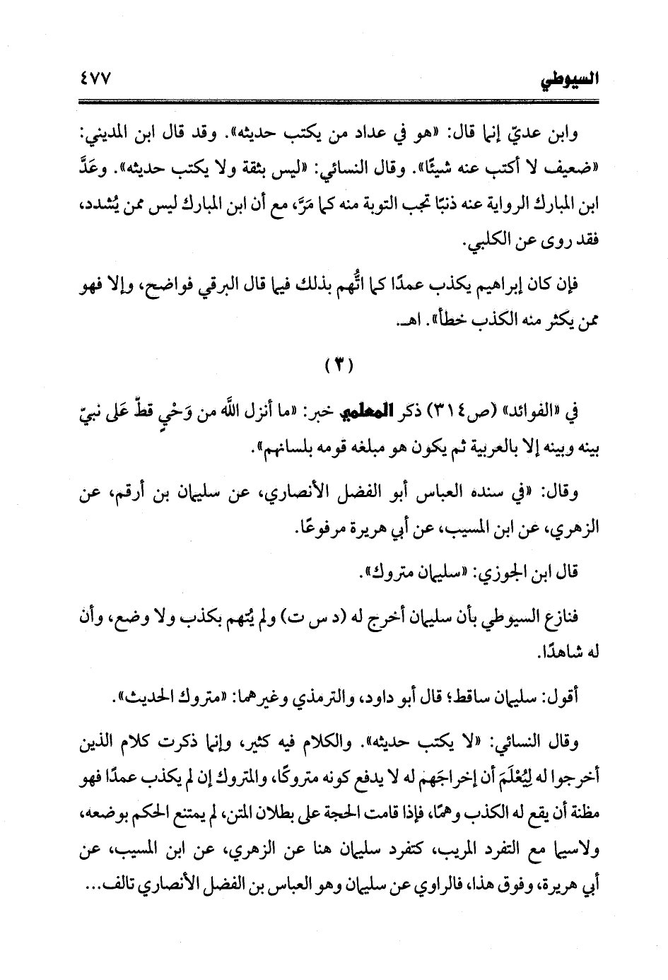 فنازع السيوطي بأن سليمان أخرج له (د س ت) ولم يُتهم بكذب ولا وضع، وأن له شاهدًا.