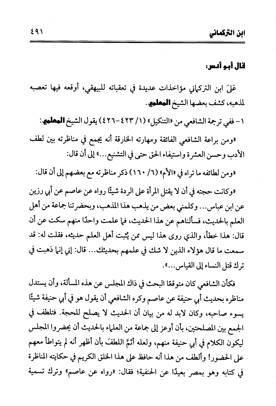 1 - ففي ترجمة الشافعي من "التنكيل" (1/ 423 - 426) يقول الشيخ المعلمي: