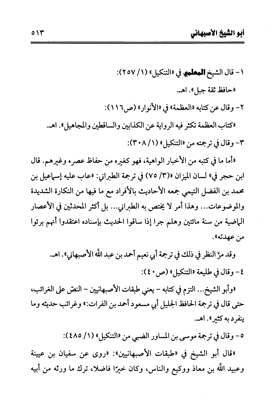 1 - قال الشيخ المعلمي في "التنكيل" (1/ 257):