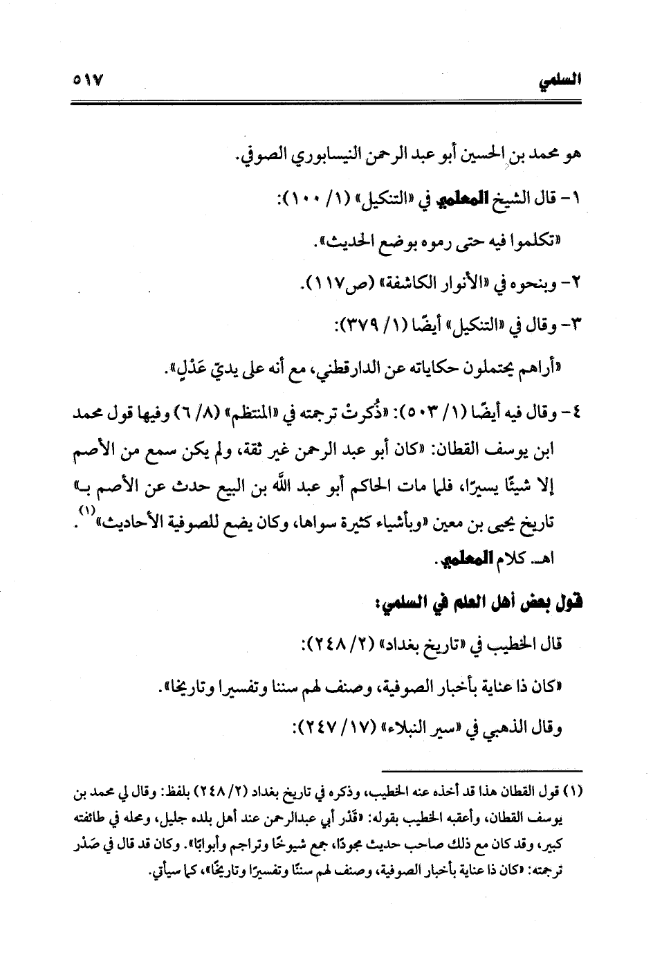 1 - قال الشيخ المعلمي في "التنكيل" (1/ 100):