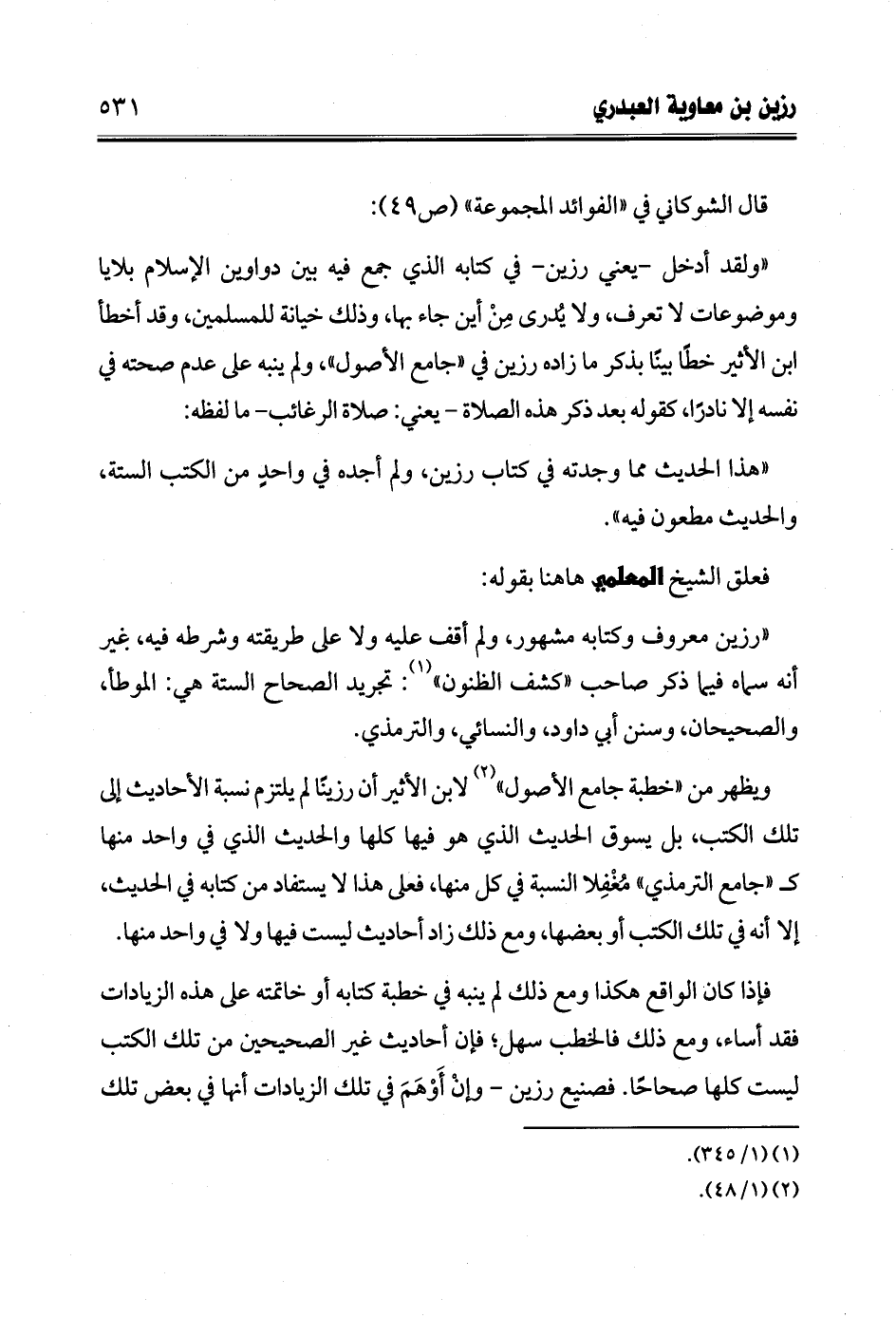 ويظهر من "خطبة جامع الأصول" (¬2) لابن الأثير أن رزينًا لم يلتزم نسبة الأحاديث إلى تلك الكتب، بل يسوق الحديث الذي هو فيها كلها والحديث الذي في واحد منها كـ "جامع الترمذي" مُغْفِلا النسبة في كل منها، فعلى هذا لا يستفاد من كتابه في الحديث، إلا أنه في تلك الكتب أو بعضها، ومع ذلك زاد أحاديث ليست فيها ولا في واحد منها.