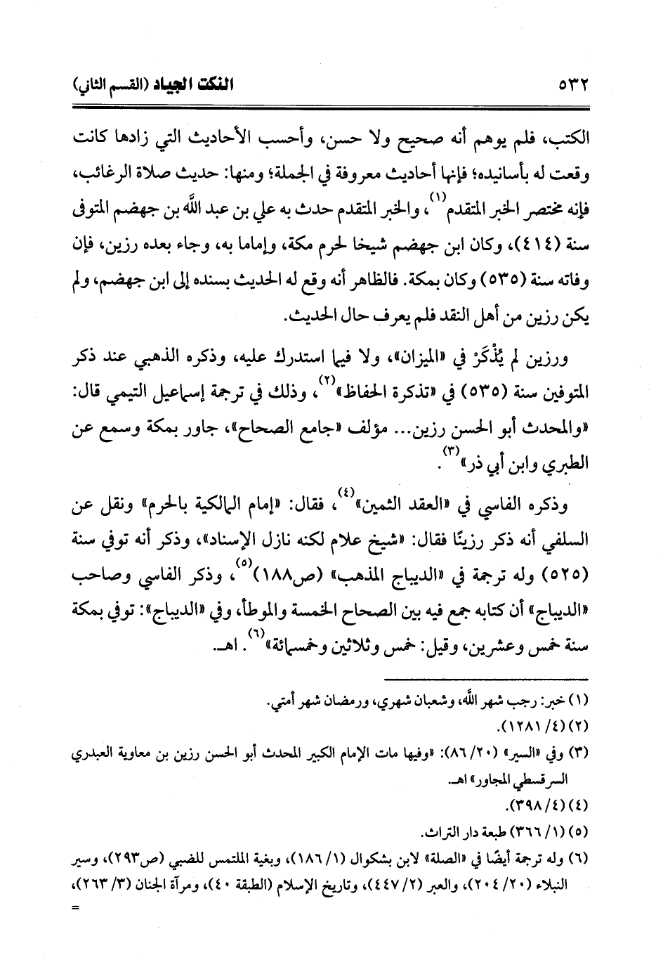 ورزين لم يُذْكَرْ في "الميزان"، ولا فيما استدرك عليه، وذكره الذهبي عند ذكر المتوفن سنة (535) في "تذكرة الحفاظ" (¬2)، وذلك في ترجمة إسماعيل التيمي قال: "والمحدث أبو الحسن رزين ... مؤلف "جامع الصحاح"، جاور بمكة وسمع عن الطبري وابن أبي ذر" (¬3).
